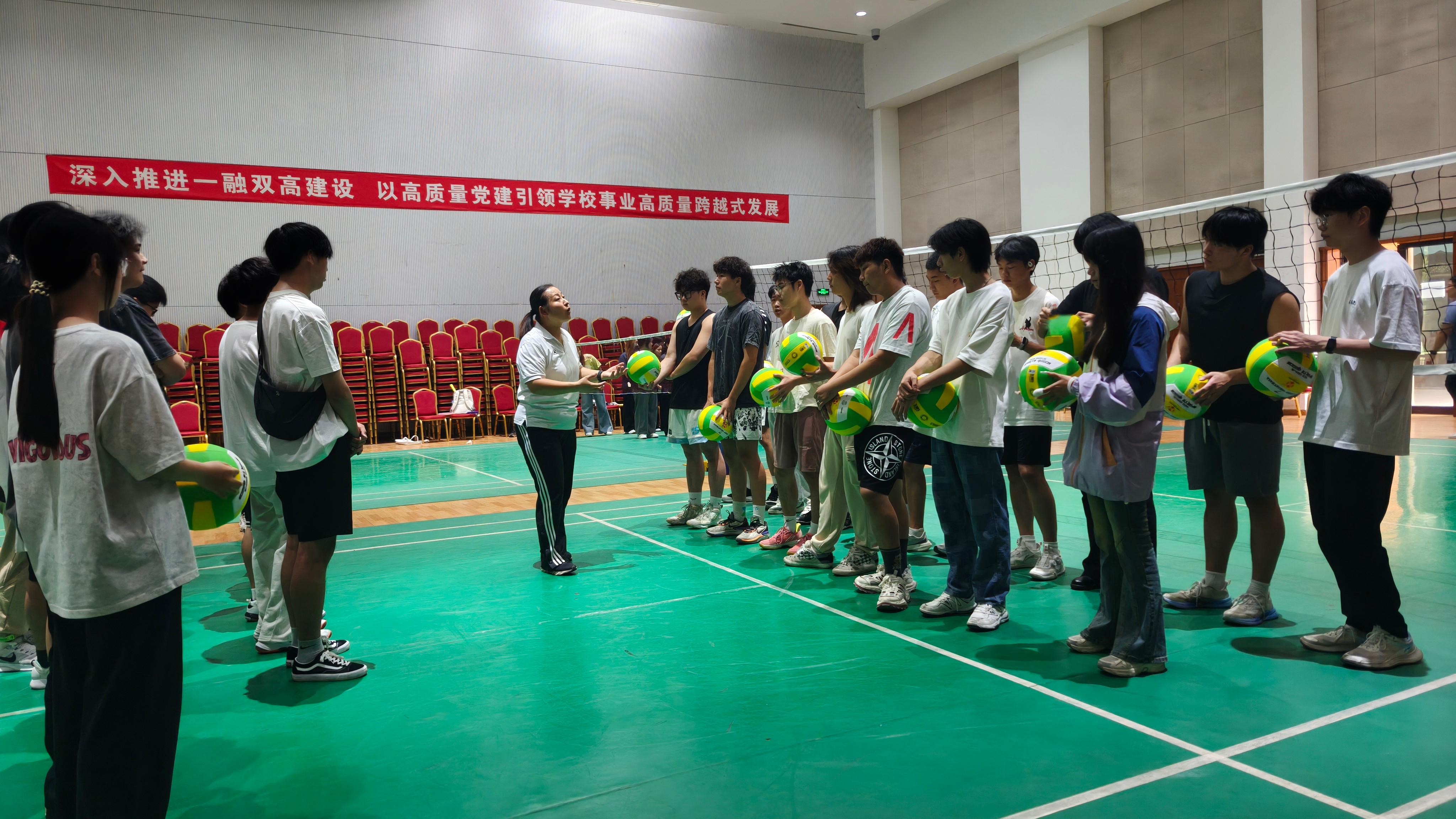 活动中,于教练系统讲解气排球基础规则与场地知识,并同步结合实战演示传球、垫球等核心技巧。我校排球社成员专注聆听,踊跃提问,双方成员深入探讨了气排球训练方法。实战环节,两校成员组队展开对抗,切磋球技,现场气氛热烈欢快。期间,外包学院向我校排球社捐赠专业气排球20个。