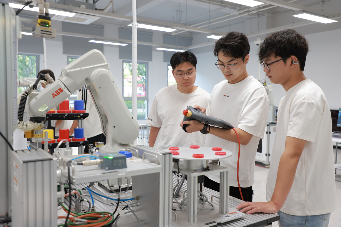 为助力区域制造业智能化升级,苏州百年职业学院智能制造学院倾力打造了“工业机器人操作与运维实训室”,该实训室以“产教融合、虚实结合”为特色,集教学、实训、竞赛、社会服务四大功能于一体,显著提升我院智能控制技术、机电一体化技术等专业的实践教学质量,为长三角智能制造产业输送更多高素质技术技能人才。
