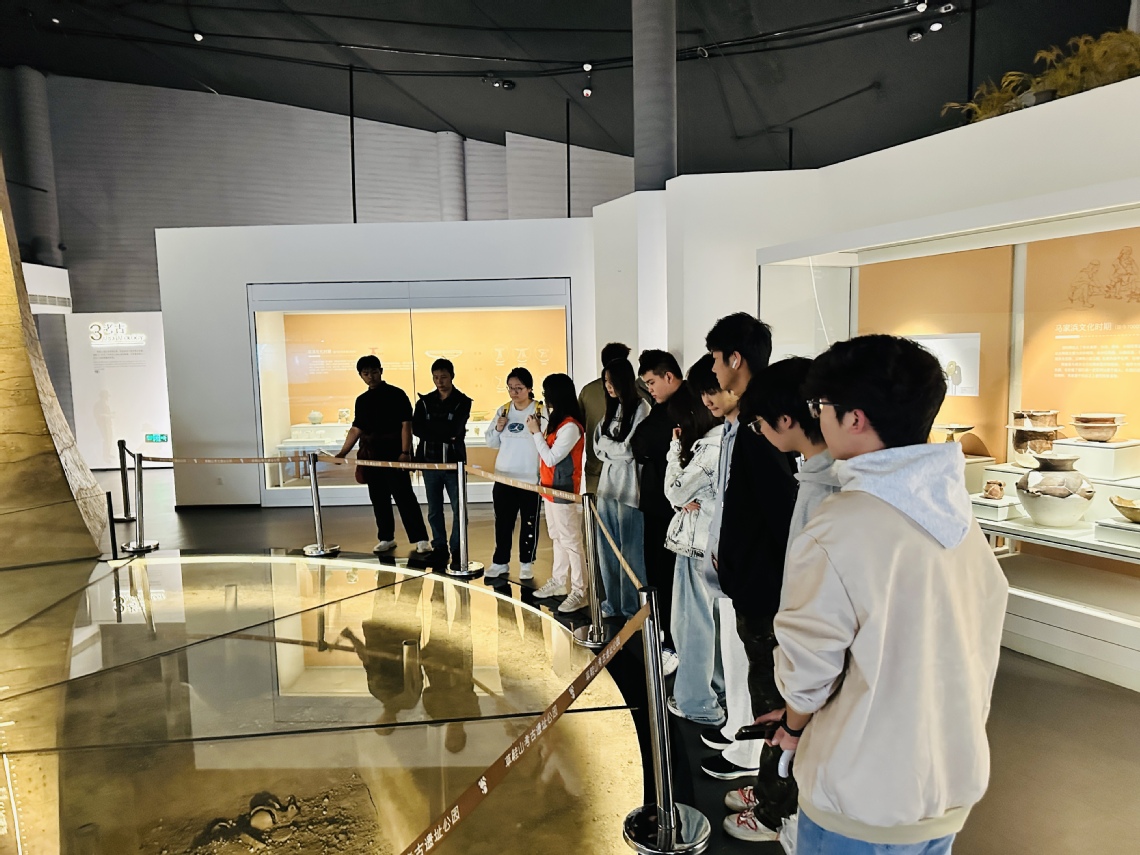 在草鞋山遗址公园,学生们系统观摩了新石器时代崧泽文化至良渚文化时期的出土文物,通过专业讲解深入了解长江下游史前文明发展脉络。在文物实景展示中,学生们切身感受古代先民的生产智慧,增强了对中华文明起源的认知与文化认同。