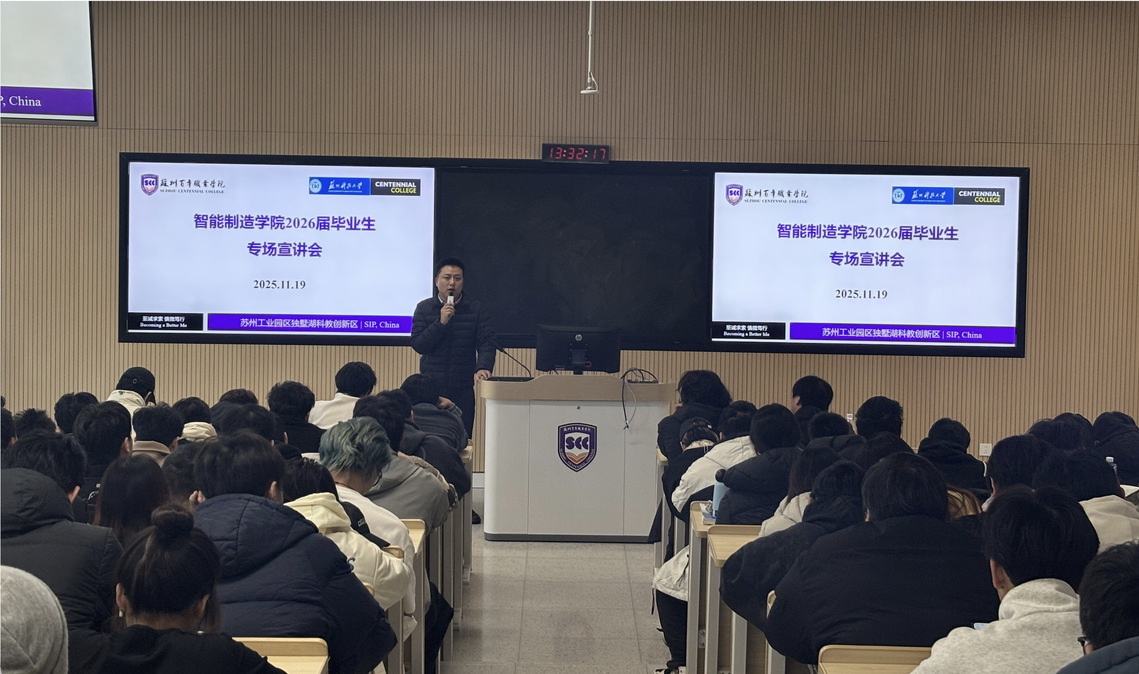 为深化产教融合,拓宽学生实习与就业渠道,11月19日,我校智能制造学院成功举办2026届毕业生企业专场宣讲会。华恒半导体、阿丘机器人、精微特电子、古田自动化等十余家知名企业代表受邀参会,智能制造学院副院长于朋出席活动并致辞。