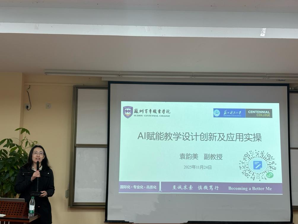本次培训特邀南京铁道职业技术学院运输经济管理学院副教授袁韵美主讲。培训分为专题讲座与实操演练两个环节。在专题讲座中,袁韵美以“AI赋能教学设计创新”为主题,系统介绍了AI在教育领域的多种应用场景,结合具体案例,生动展示了如何利用AI工具,高效完成教学资源的设计与开发。