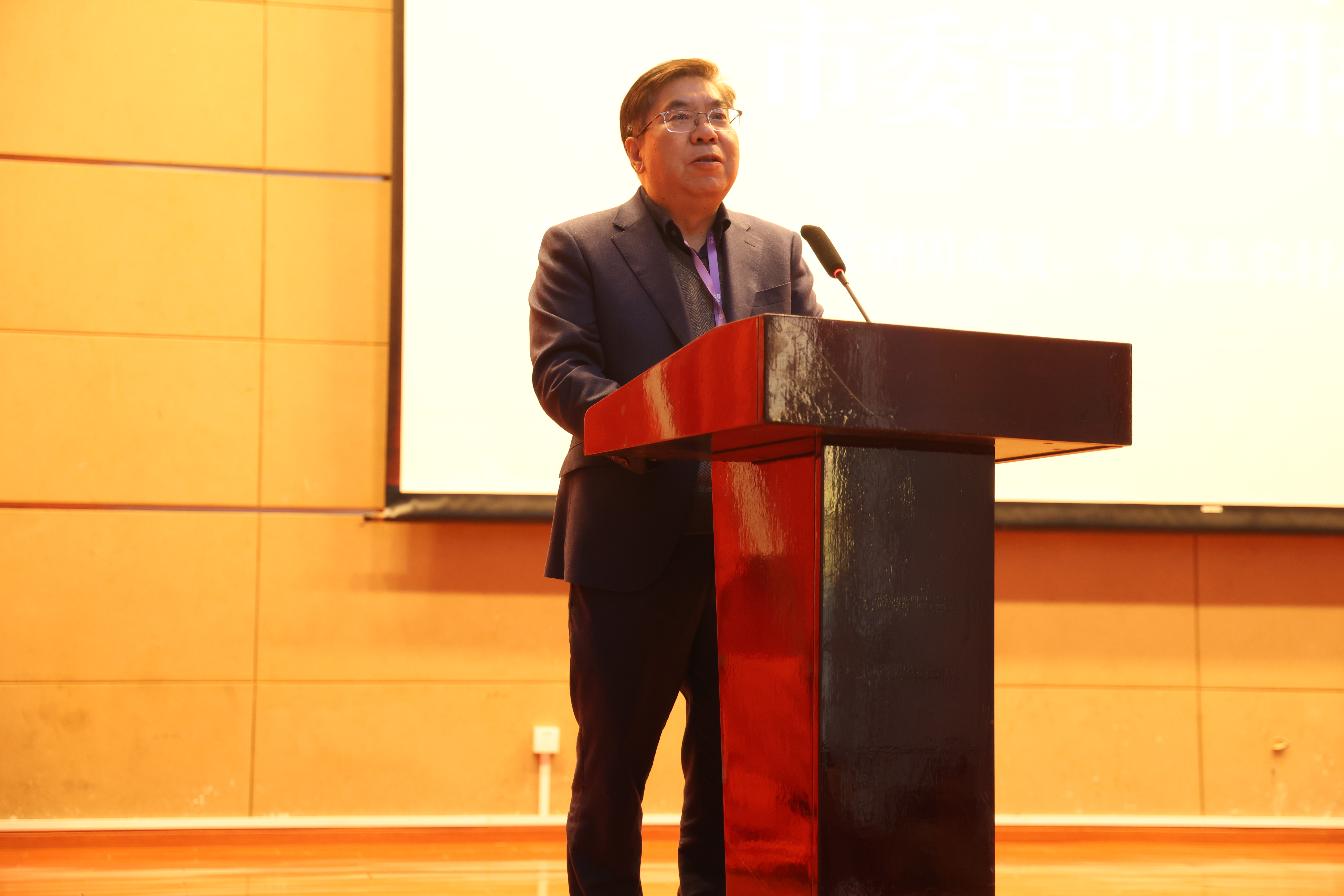 市委宣讲团成员、市农业农村局局长、党组书记宁春生作宣讲报告,学校党委书记孙红军主持活动,在校校领导、校党委理论学习中心组成员,相关部门负责人及师生代表共计约200人参加。