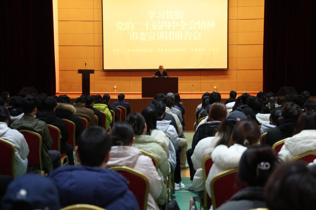 2025年11月28日,校党委理论学习中心组(扩大)会暨学习贯彻党的二十届四中全会精神市委宣讲团报告会在我校润德堂举行。