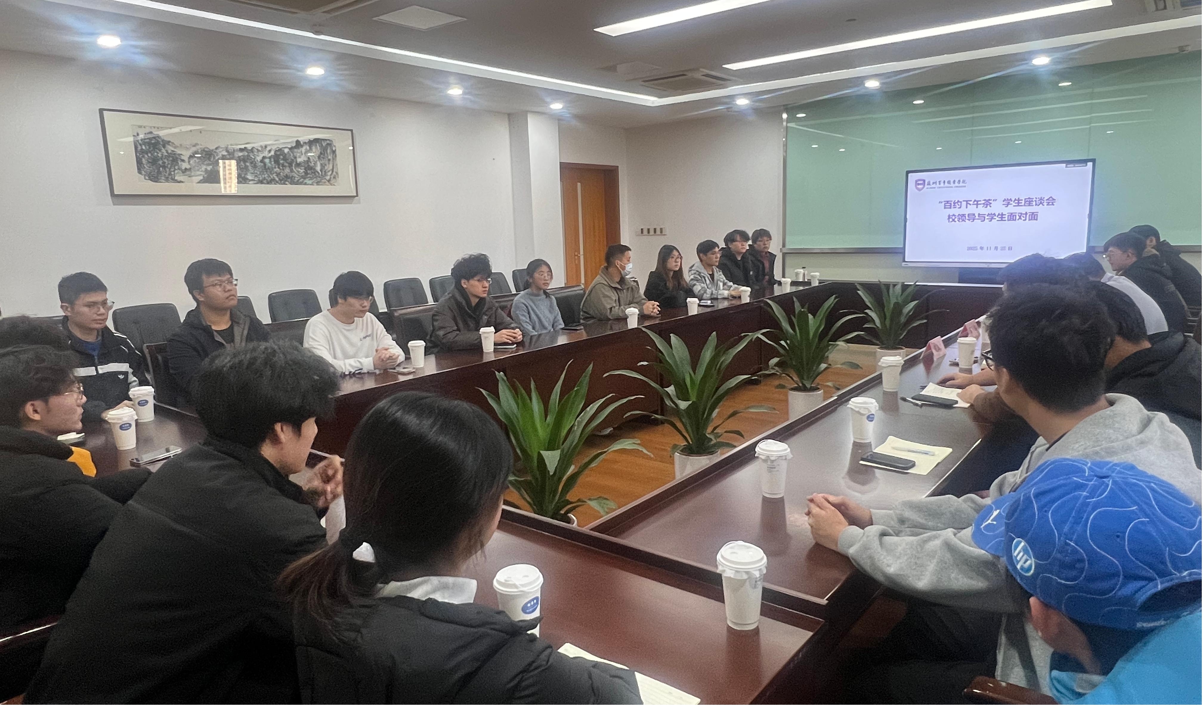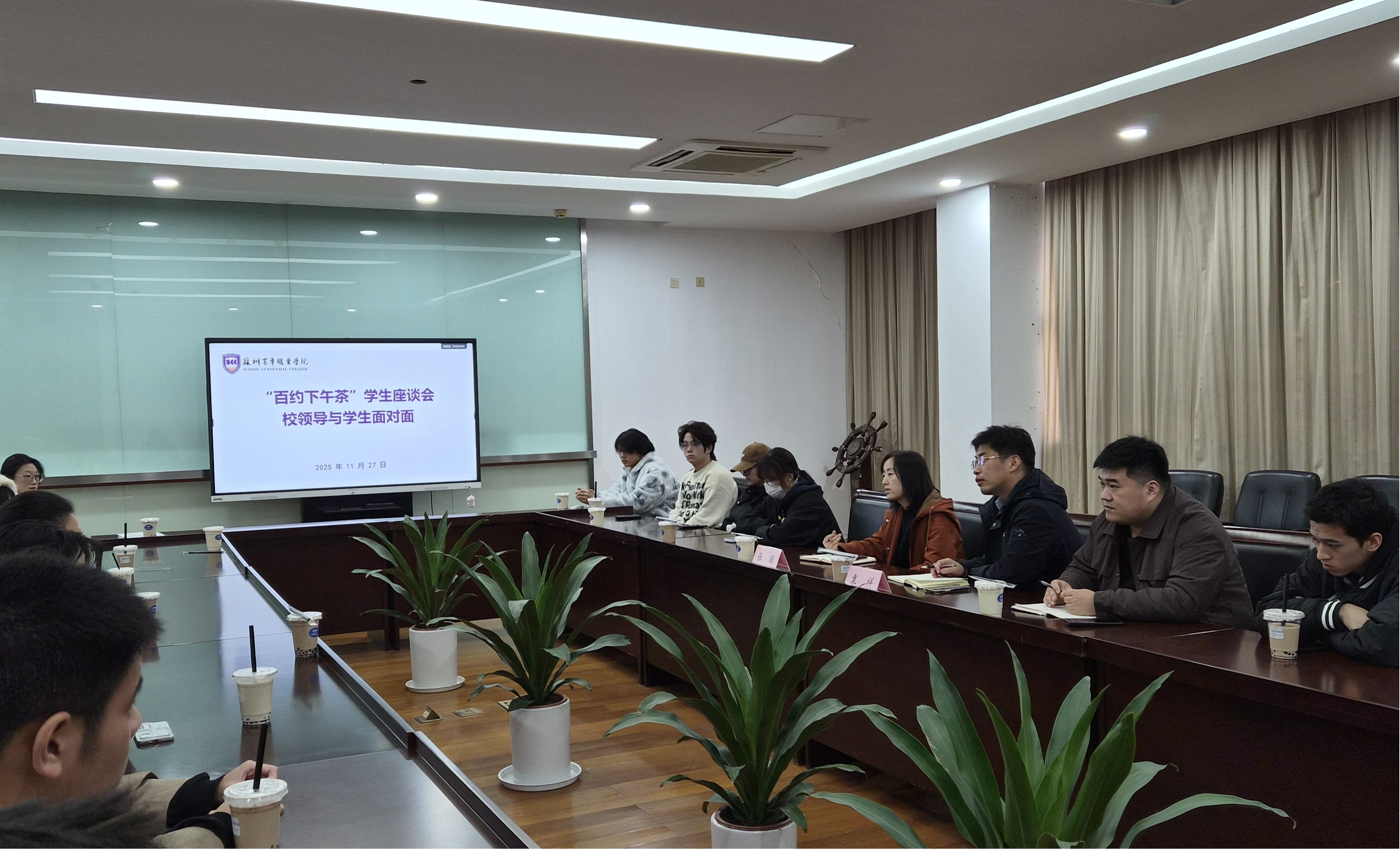 为进一步落实“以学生为中心”的发展思路,倾听学生心声,了解学生诉求,解决学生实际困难,助力学生更好地成长成才,提升学生的幸福感、获得感,11月25日、27日下午,我校召开百约下午茶“校领导与学生面对面”座谈会。副校长张丽、校长助理侯玉杰、校长助理袁祥出席座谈会,学生事务部(安全保卫部)主任胡赛主持会议。