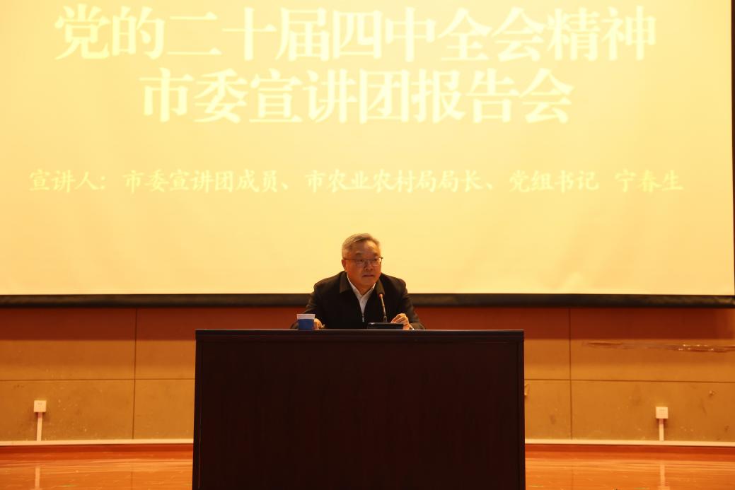市委宣讲团成员、市农业农村局局长、党组书记宁春生作宣讲报告,学校党委书记孙红军主持活动,在校校领导、校党委理论学习中心组成员,相关部门负责人及师生代表共计约200人参加。