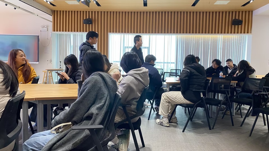首先,师生们参观了企业的现代化展厅与核心工作区域。通过企业HR的详细介绍和近距离观摩,同学们直观了解了上壹智能在直播带货、大型活动策划及视频剪辑等领域的创新成果与实际应用。有序的工作环境及员工们专注专业的工作状态,给师生们留下了深刻印象。