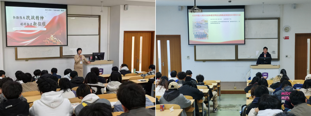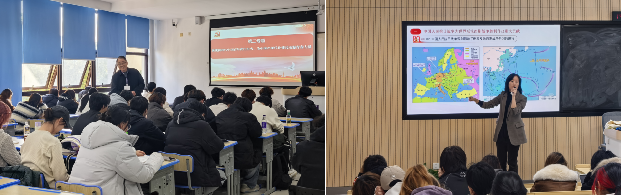 党委副书记鲁伟以《展现新时代中国青年责任担当 为中国式现代化建设贡献青春力量》为主题,面向建筑室内设计专业学生开展形势与政策教学,勉励青年学子将个人成长融入国家发展大局,在技能报国中实现人生价值。副校长张丽则围绕抗战精神主题,为动漫制作技术、广告艺术设计专业学生带来一堂富有历史纵深与现实关照的思政课,引导学生在铭记苦难辉煌中坚定理想信念。