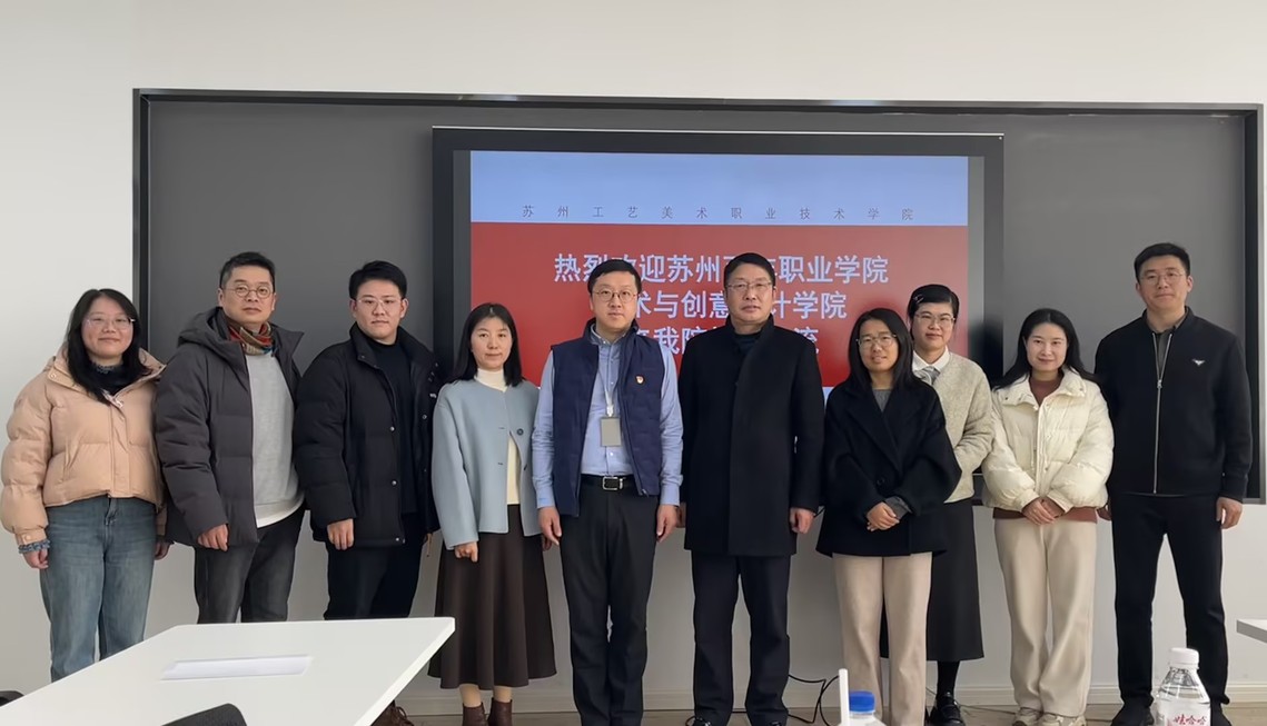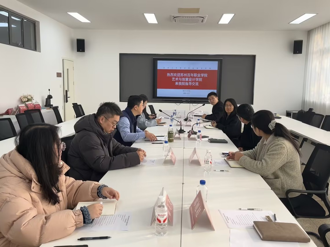 为深化校际合作,共同探索艺术设计教育高质量发展新路径,2025年12月17日上午,苏州百年职业学院艺术创意设计学院一行赴苏州工艺美术职业技术学院进行调研交流。苏州工艺美院为首批江苏省示范性高等职业院校、中国特色高水平高职学校和专业建设计划建设单位。本次双方交流聚焦新时期艺术设计人才培养的创新模式,旨在推动两院在党建、专业建设等多领域的深度协作。
