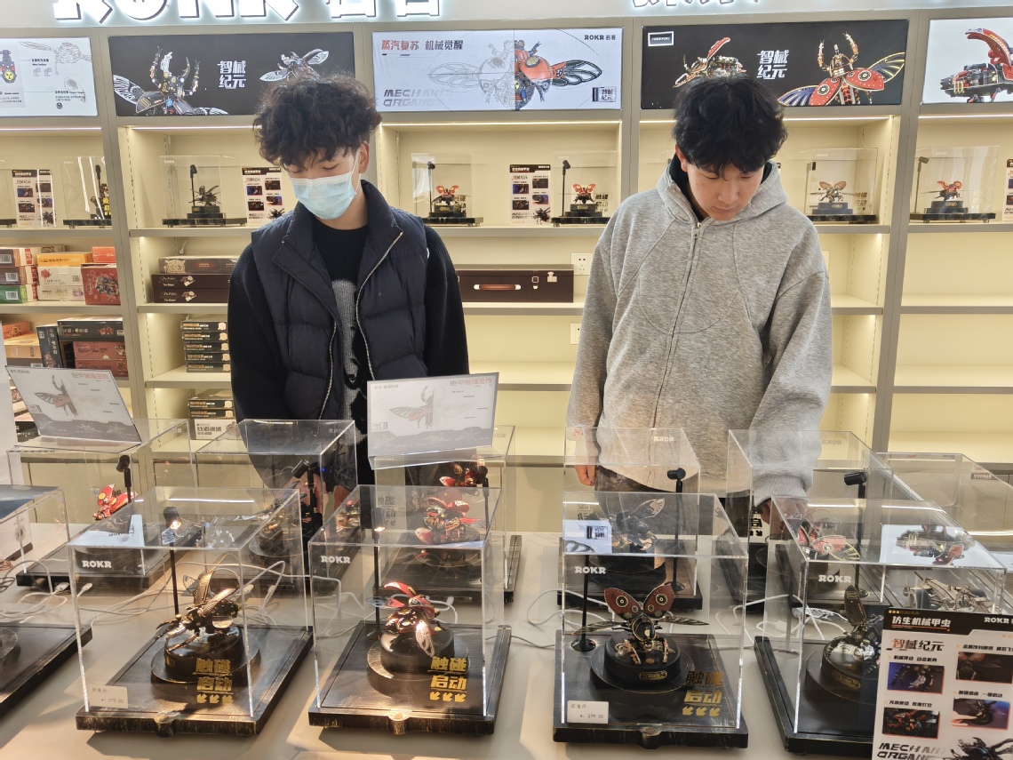 活动中,师生们首先走访了企业的办公区域,近距离感受文创科技公司一线的工作氛围。随后,师生参观了若态大厦的企业展厅。相关负责人系统介绍了旗下若来(Rolife)、若客(Rokr)等品牌的产品矩阵,包括备受瞩目的国风盲盒IP“Nanci”的设计理念,以及企业与百事可乐等知名品牌的联动产品案例。讲解中特别提及了产品如何针对不同国家市场与不同年龄层用户进行设计与市场定位,体现出企业在全球化布局中的精细运营思维。