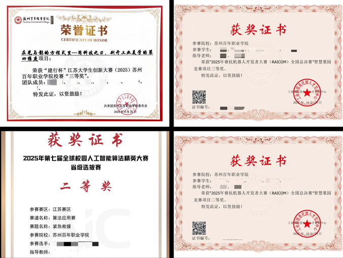本年度科技小组以赛促学,取得了丰硕的成果,6月首战“建行杯”创新大赛获校赛三等奖;10月睿抗机器人开发者大赛斩获国家二等奖/三等奖;11月全球校园人工智能算法精英大赛夺得省二等奖。多项奖项印证“以赛育人” 策略实效,学生创新力与协作力得到全面提升。
