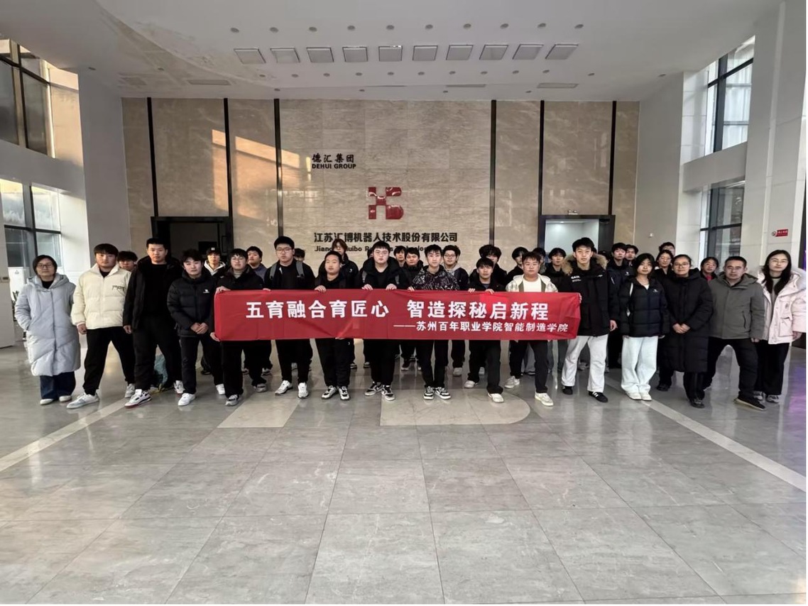 为深化“五育融合”育人理念,拓展专业视野,提升学生实践认知能力,12月25日,我校智能制造学院组织机电一体化技术专业学生前往江苏汇博机器人技术股份有限公司开展参观学习活动。