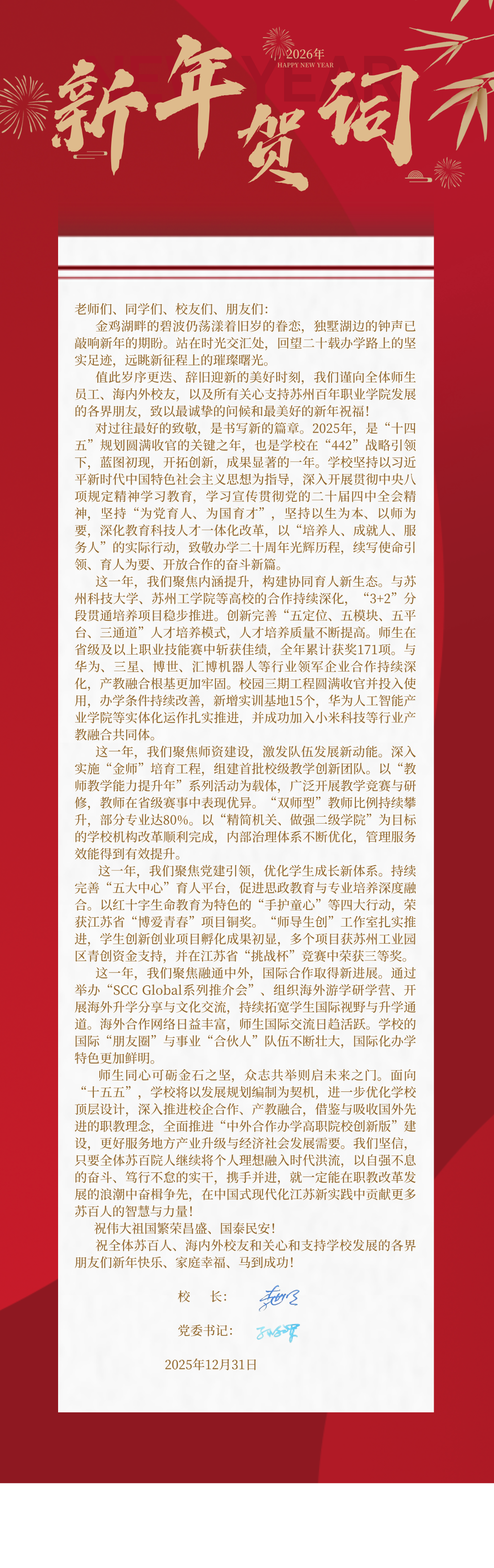 笃行实干 向新图强——苏州百年职业学院2026年新年贺词