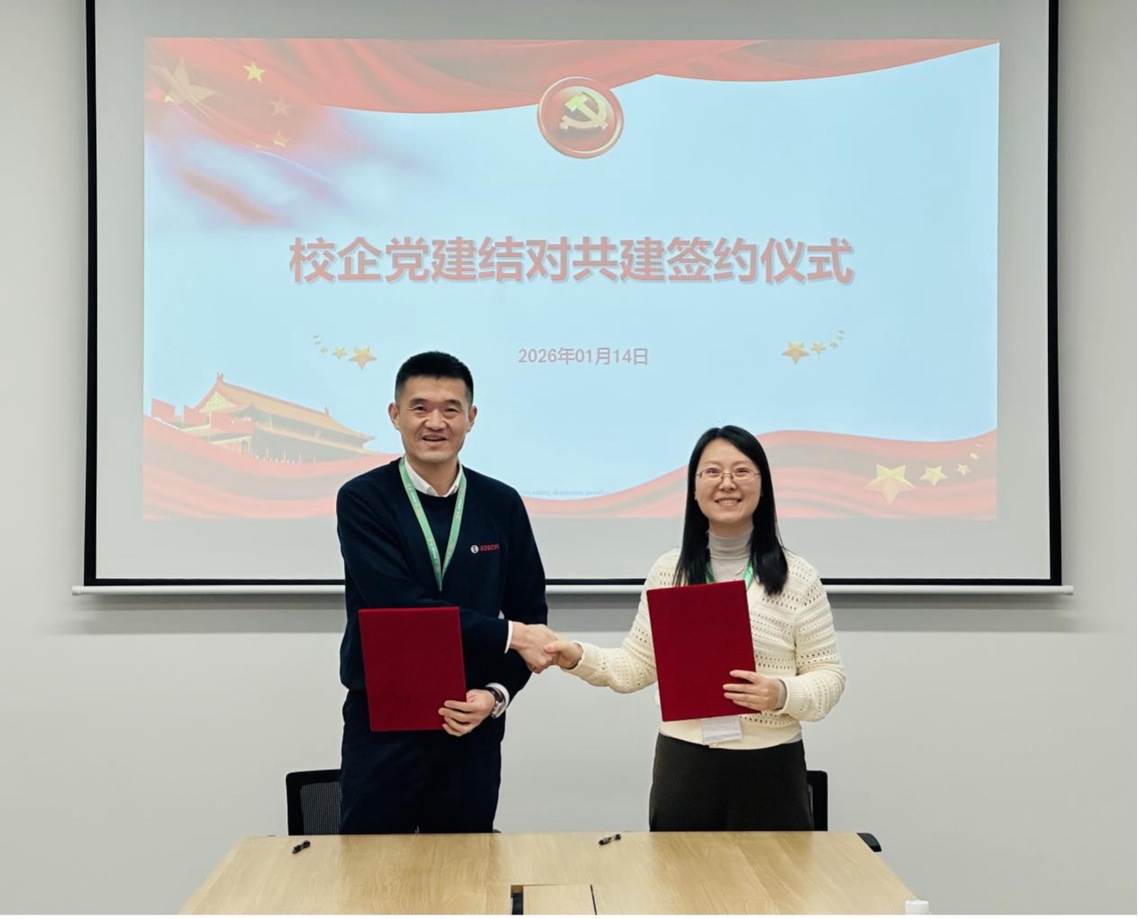 1月4日,苏州百年职业学院党委委员、组织部部长、校长助理侯玉杰带队,智能制造学院党总支副书记(主持工作)、副院长(主持工作)李露,继续教育学院副院长于艳红,智能制造学院教师党支部书记、学院副院长赵春燕等一行5人,应邀赴博世汽车部件(苏州)有限公司(以下简称“博世苏州”)开展校企党建交流并签署共建协议。博世苏州党委副书记张淳健带队的党委干部代表热情接待了我校代表团,双方在博世苏州二厂208会议室共同完成智能制造学院党总支与博世苏州智守党委的党建共建协议签约仪式。此次签约以党建为纽带,旨在深化校企合作层次,实现资源共享、优势互补,携手推进高素质技术技能人才培养与产业高质量发展。