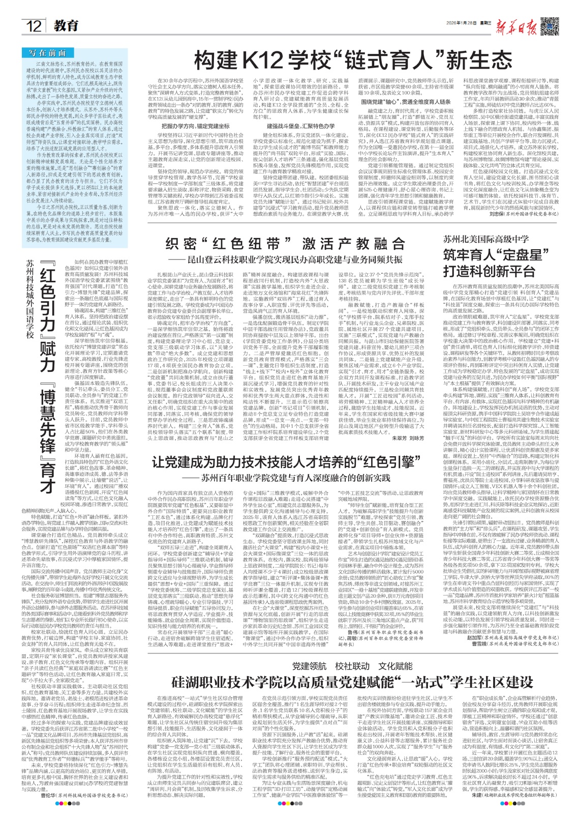 《新华日报》公众号链接:让党建成为助力技术技能人才培养的“红色引擎”——苏州百年职业学院党建与育人深度融合的创新实践