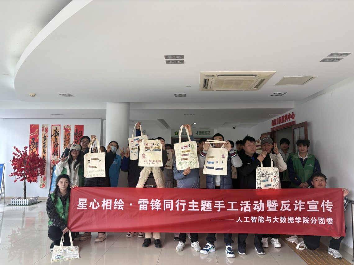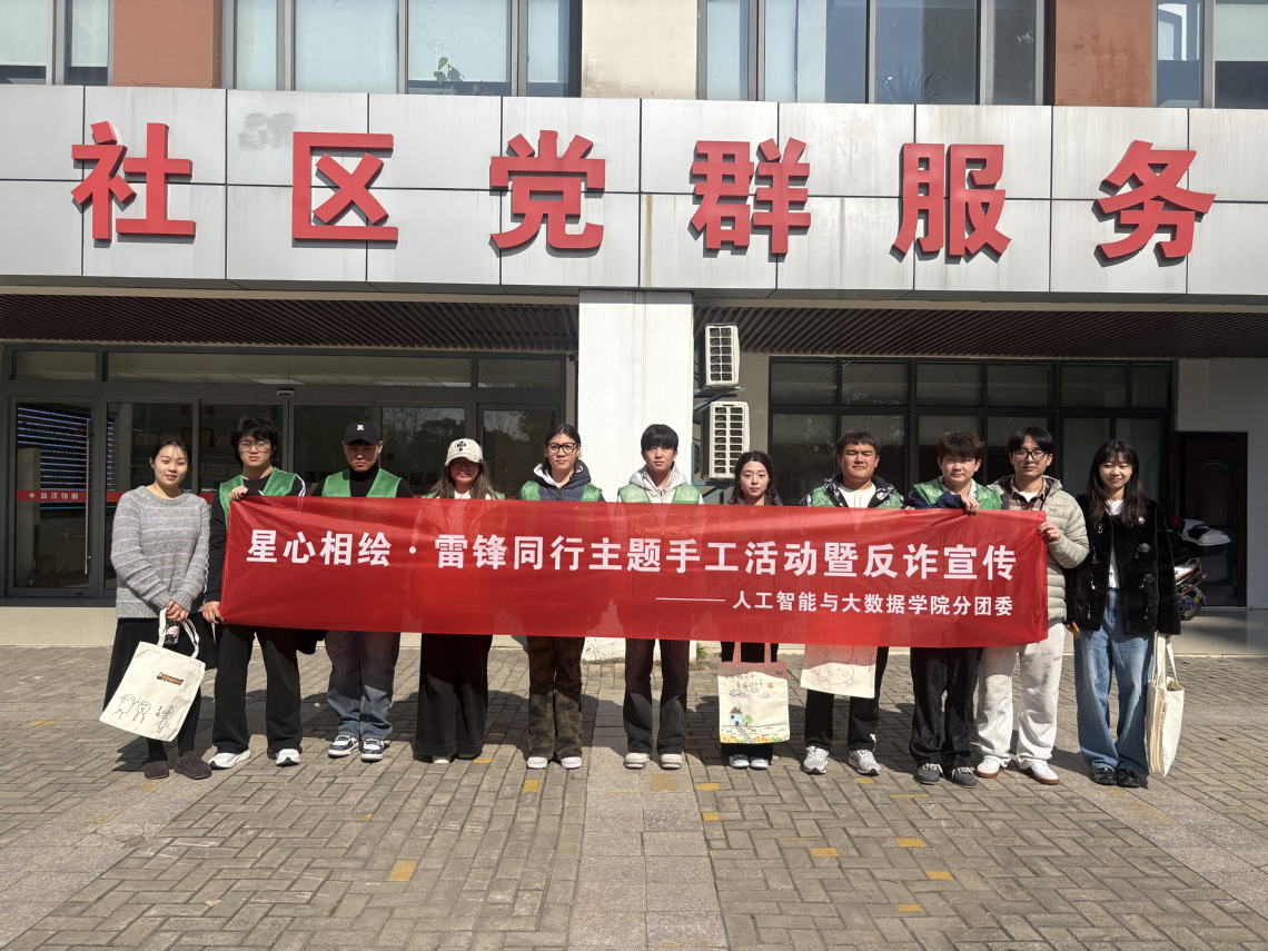 三月春风送暖,雷锋精神薪火相传。为深入推进人工智能与大数据学院“一院一品”特色品牌建设,积极探索“专业+公益”深度融合的育人新路径,3月13日下午,人工智能与大数据学院的志愿者们走进斜塘蔺惠社区,面向社区残障人士开展了一场以“星心相绘·雷锋同行”为主题的手工活动暨反诈宣传活动。