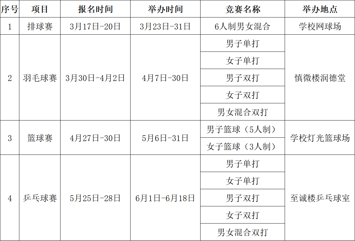 注:比赛时间为每周三、周五下午或周六周日。如遇极端天气或考试周等特殊情况,将统一调整并另行通知。