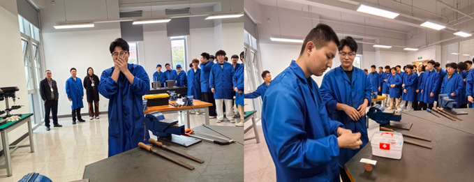 为进一步强化实训教学安全管理,提升师生安全防范意识与应急处置能力,3月26日,未来工匠学院联合智能制造学院、安全保卫部,在求是楼105钳工实训室组织开展钳工实训室安全专项演练。本次演练聚焦钻床触电、钢锯锯伤手指两大实训高频风险场景,未来工匠学院常务副院长宁方美、智能制造学院副院长于朋、实训教师、全体实训学生及安全保卫部共同参与。