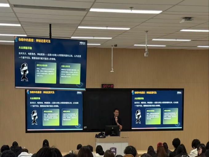 讲座中,吴运文老师立足当下国内外网络安全新形势,结合勒索软件攻击、DDoS攻击、供应链攻击、数据泄露、AI安全、关键基础设施防护等近年典型网络安全事件,深度剖析行业面临的机遇与挑战。他以通俗形象的语言拆解网络安全攻防逻辑、解读网络攻击核心形态,将专业理论知识转化为生动易懂的内容,让在场学生直观理解网络安全的重要性与现实紧迫性。针对大学生日常学习生活场景,吴老师重点提醒,切勿因小利随意扫描不明二维码、务必核验信息来源权威性,在公共场合谨慎连接免费WiFi,切实强化个人信息保护意识,筑牢自身网络安全防线。