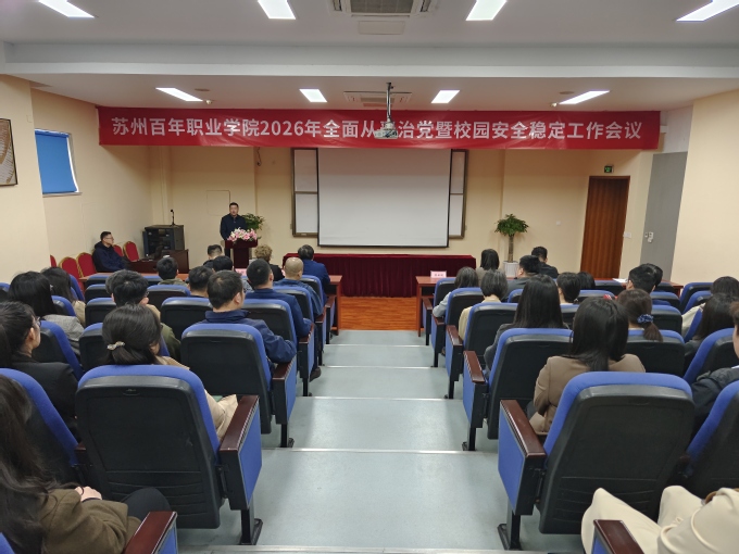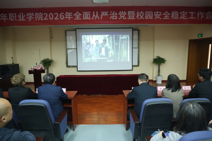 校党委书记孙红军发表题为“锚定使命强党建 守牢底线护安全”的讲话。他在讲话中从加强党的政治建设、强化思想理论武装、持续推进作风效能建设、夯实党建工作根基、维护校园安全稳定等方面回顾了学校2025年全面从严治党和维护校园安全稳定取得的扎实成效;全面分析了当前学校发展面临的形势与挑战,对2026年全面从严治党和校园安全稳定工作作出全面部署。他强调,一要深化政治建设,把稳办学治校“方向盘”。扎实开展树立和践行正确政绩观学习教育,严格落实“第一议题”和理论学习中心组学习制度,强化理论武装,坚守正确办学方向,压紧压实意识形态工作责任。二要加强纪律建设,筑牢拒腐防变“防护网”。常态化开展党纪政纪法律法规学习和警示教育,一体推进教育领域腐败整治“学、查、治”,风腐同查同治。三要强化监督执纪,织密权力运行“监督网”。做实政治监督和日常监督,精准运用“四种形态”,落实“三个区分开来”,激励干部担当作为。四要深化作风效能,提振干事创业“精气神”。持续纠治形式主义、官僚主义,大力弘扬优良作风,加强师德师风建设,用心用情解决师生急难愁盼问题。五要筑牢思想防线,凝聚安全稳定“强合力”。坚决维护政治和意识形态安全,防范宗教及境外势力渗透,加强网络舆情管控和网络安全。六要压实安全责任,守好校园安全“生命线”。聚焦开学季、毕业季等关键节点,开展全覆盖安全隐患排查整治,完善应急预案并加强实战演练;强化心理健康教育和食品安全管理,将安全工作纳入年度考核,对安全责任事故实行“一票否决”。七要压实政治责任,凝聚管党治党“强合力”。拧紧责任链条,强化协同联动,狠抓工作落实,将全面从严治党成效转化为推动学校高质量发展的强大动力。
