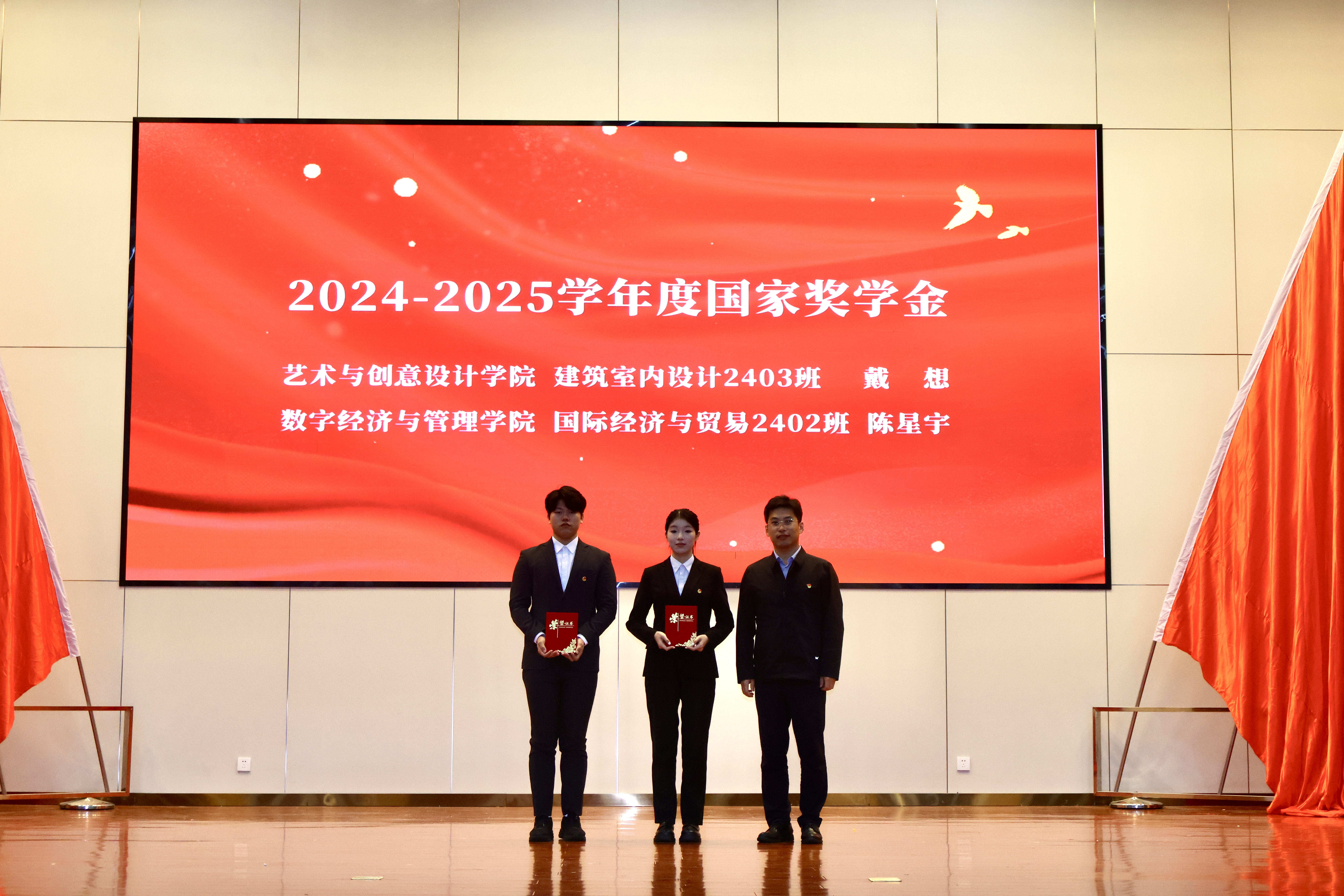 随后,2024-2025学年度国家奖学金获得者陈星宇同学分享了自己勤学善思、砥砺奋进的成长历程与青春感悟,并表示将继续脚踏实地、锐意进取,不辜负学校的培养与期望。